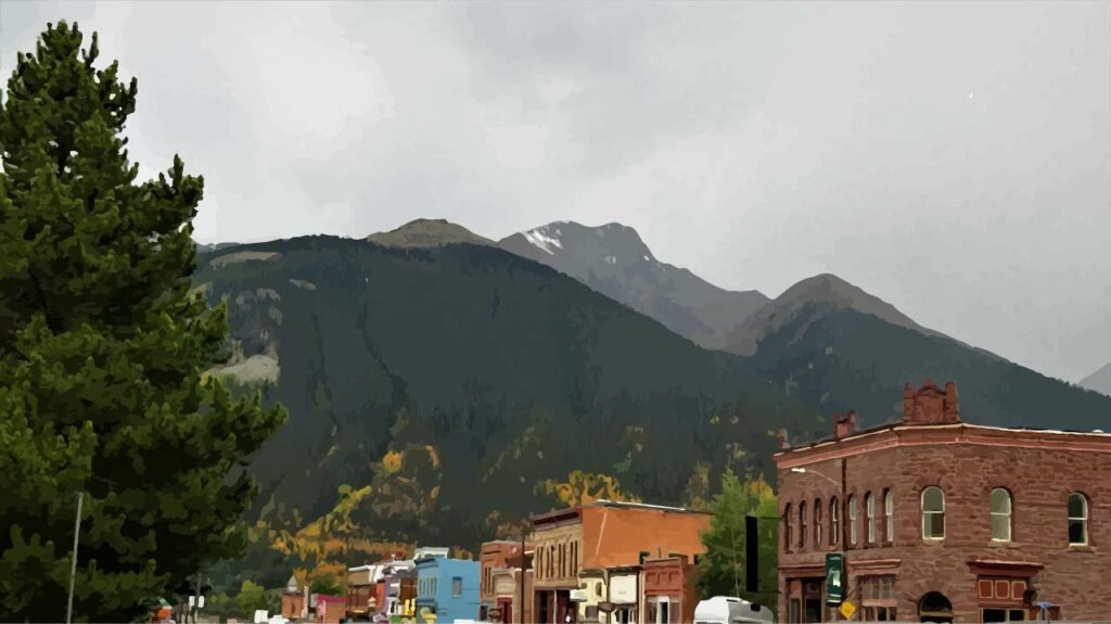 Graphics for darkAngel are a composite of bitmap-traced images and drawings created in Adobe Animate. The image on the left shows an example of the bitmap traced imagery (meant to be the town of Greenmeadow, original sourced from Adobe Stock “Road Trip, Silverton Colorado Views” by Pat). The more complex background images used this method. The image on the right is an example of graphics made in Adobe Animate and was used for simpler elements.